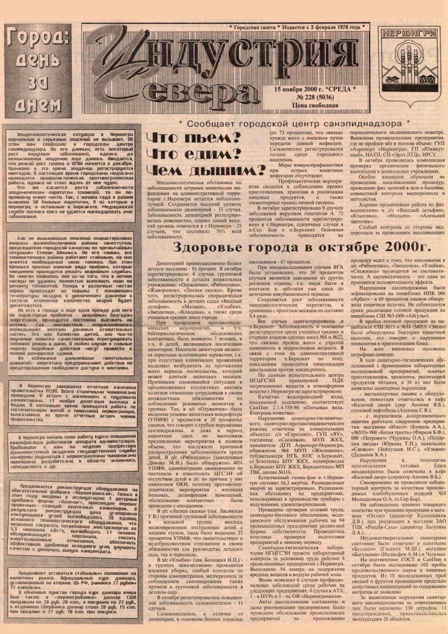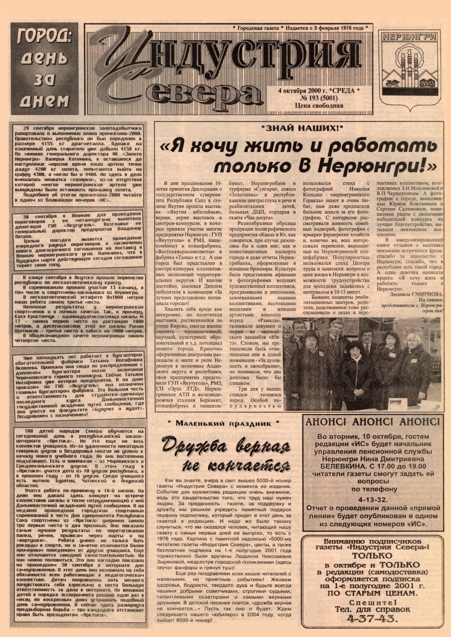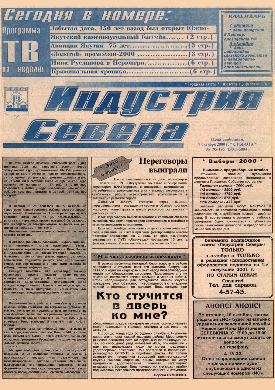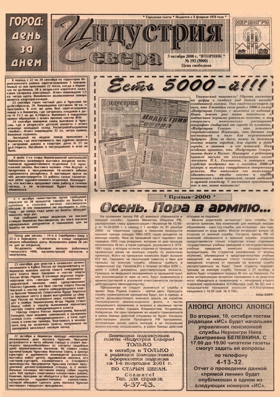 Индустрия Севера, выпуски за 2000 год