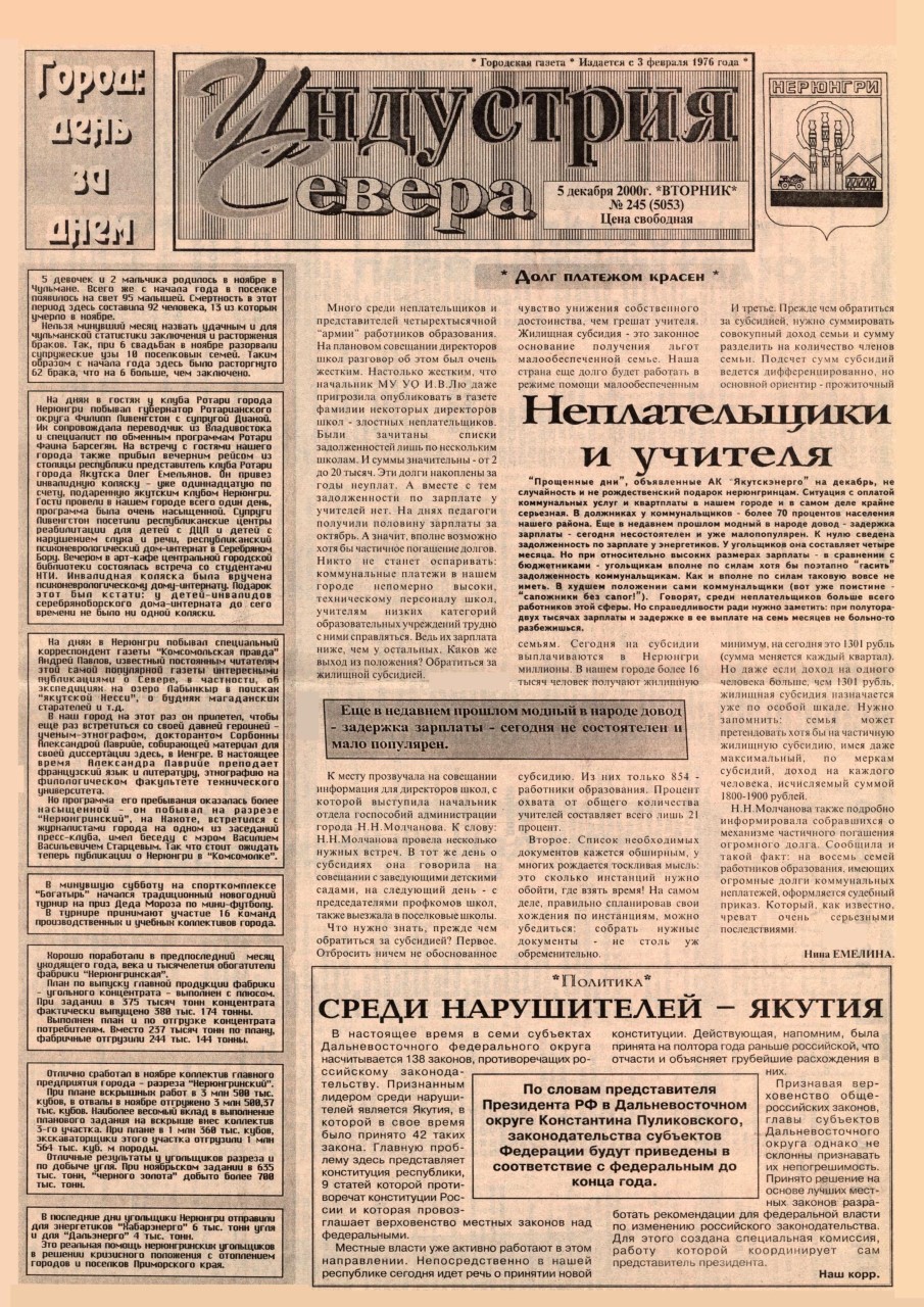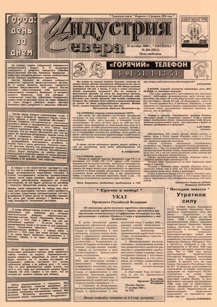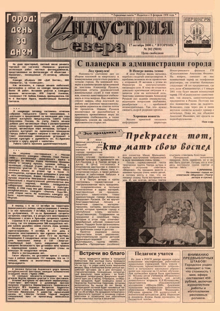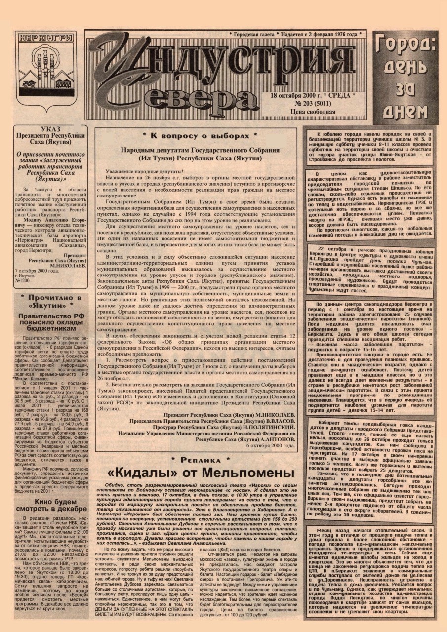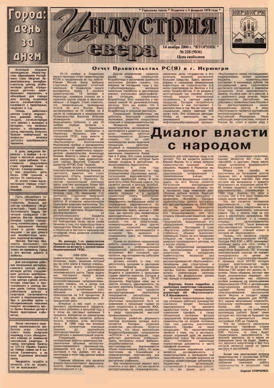 Индустрия Севера, выпуски за 2000 год